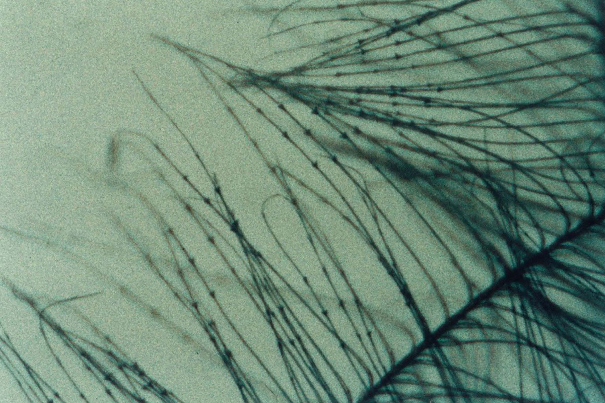 小羽枝の太さは、人間の髪の太さの約1/20の細さです。