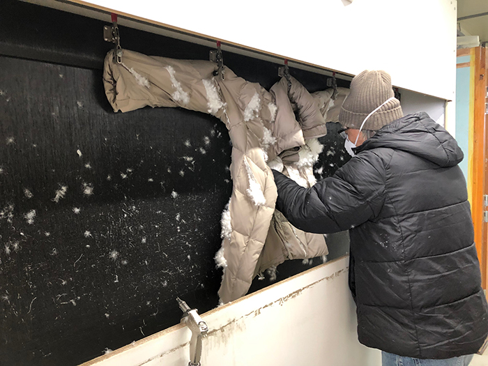消費者は不要になった羽毛製品を回収場所に持ち込んでもらいます。
